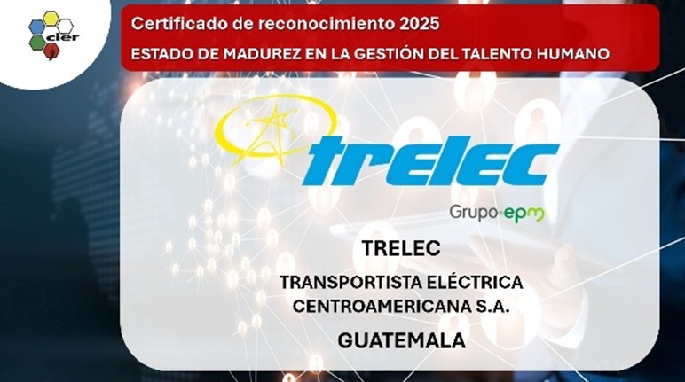 Este fue otorgado por la sobresaliente gestión del talento humano, en el marco del Estudio Regional Anual de la Gestión de Talento – Edición 2025. Este estudio, en el que participaron 31 empresas de 15 países del sector eléctrico latinoamericano, evaluó dimensiones como estrategia de recursos humanos, diseño organizacional, selección, formación, desempeño, desarrollo de liderazgo, compensación, cultura, inclusión laboral y gestión del cambio. EEGSA y TRELEC alcanzaron un Índice Global de Madurez de 3.6 sobre 4, lo que evidencia prácticas sólidas y consistentes en la administración del capital humano.